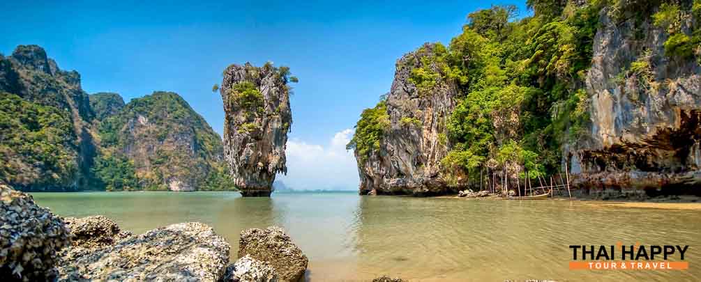 In the natural-rich Phang Nga Bay, what could be more perfect than spending any single day with a state of bliss mixed with some of adventurous pursuits on the sea? Cruising by speedboat through its area, you will first visit the recognisable James Bond Island (as Khao Tapu in Thai), a needle-like island in sight, and a site of amazing hills leaning against each other called Khao Phingkan. Seize another tropical experience with stress-free affair by reaching inside of beautiful Grotto Cave (Tham Lot). Take a big break to increase more energy with lunch while visiting Panyee Island featuring Floating Muslim Village. Seeking for more exciting variety, you can go for canoeing around Hong Island or Panak Island, to get a great pleasure from its refreshed surroundings. Continue to create more memories at Nakha Islalnd where you just swim, relax on the beach, or have sunbathing under the strong rays of tropical sun. Note that this program can be adjustable because of bad weather and sea conditions. Transport to and from your staying accommodation safely with fabulous roundtrip transfer service. Anyway, some pick-up points may have additional charge. Check for more information about the program by sending us any inquiries and your requirement as soon as possible; we are always pleased to serve you.